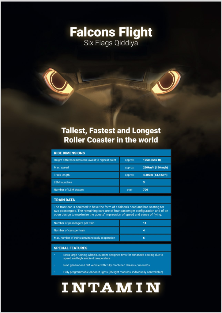 Op de IAAPA beurs in Orlando, zijn aardig veel onthullingen gedaan met betrekking tot Six Flags Qiddiya City. Zoals de treinen voor onder andere Colossus, de hybrid coaster gebouwd door GCI, en de trein van Falcon’s Flight welke door Intamin gebouwd word.