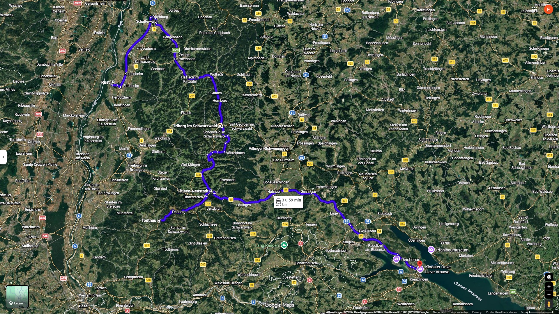 Van Rust (Europa Park) via Triberg naar Konstanz, maar niet vergeten om naar Freiburg en Todtnau te gaan voor een dag.